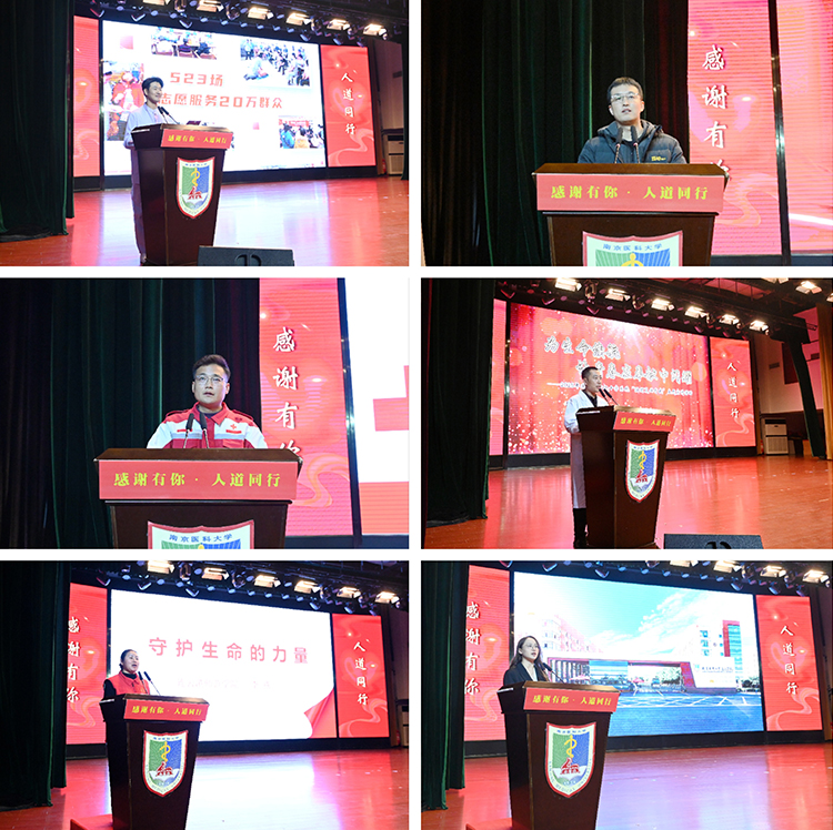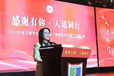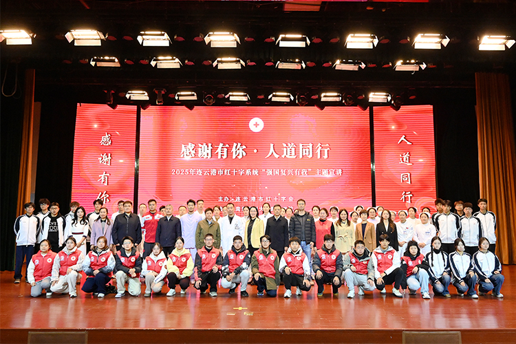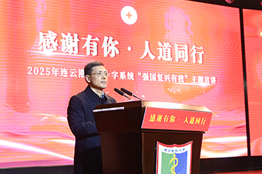 11月19日下午,我院2025年信仰公开课暨连云港市红十字系统“强国复兴有我”——“感谢有你·人道同行”主题宣讲活动在学院大礼堂举行,市红十字会党组书记、常务副会长胡忠霞,市委社会工作部副部长卞宝秀,市委市级机关工委副书记王超,团市委副书记谭诚,市纪委监委派驻第七纪检监察组副组长冯晓曦,市委宣传部讲师团副团长丛宁,连云港师范学院党委副书记刘长虹,江苏省中医院连云港医院副院长王珩,学院院长张鸿来,团委相关负责人及六百余名学生代表参加活动。
