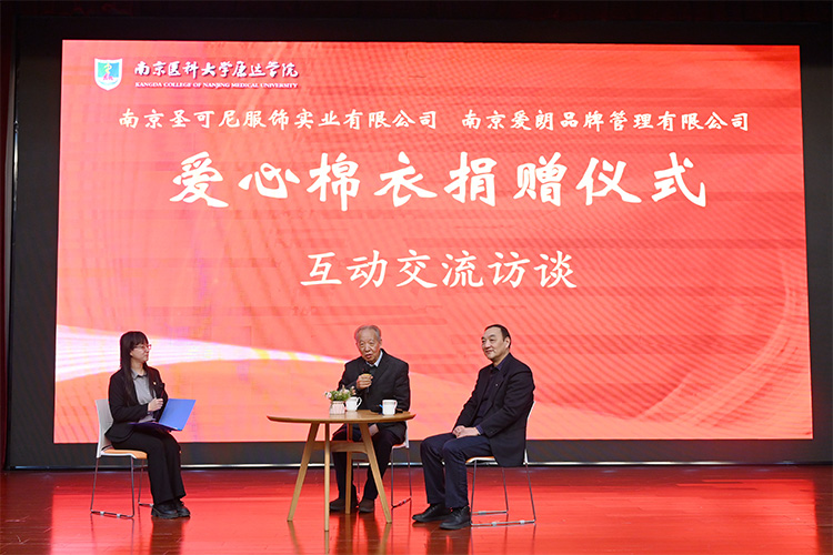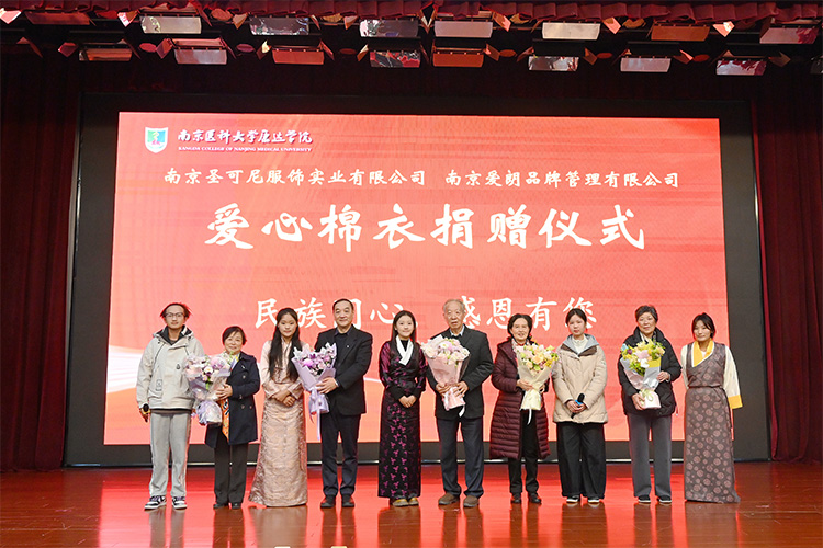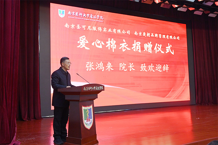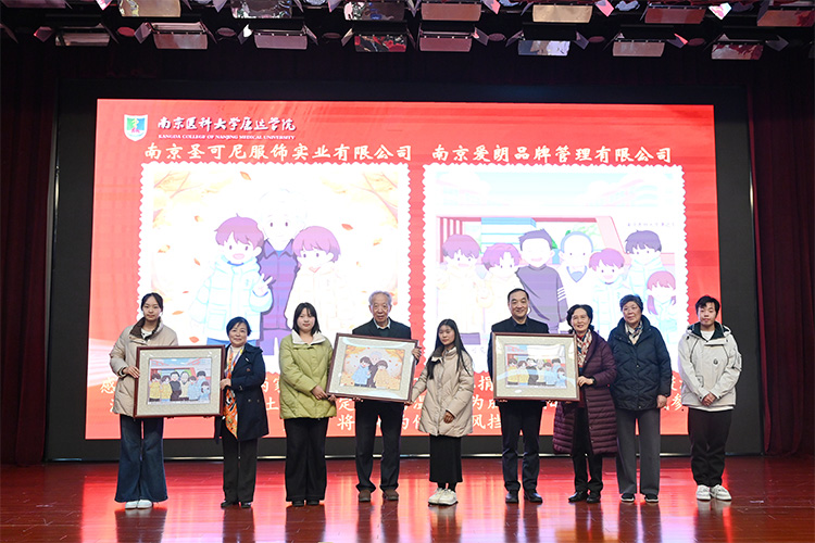 11月29日下午,南京圣可尼服饰实业有限公司、南京爱朗品牌管理有限公司2025年爱心棉衣捐赠仪式在我院医政楼报告厅举行。南京医科大学第四届董事会名誉董事长、原党委书记、江苏费孝通教育基金会原理事长陈国钧,江苏费孝通教育基金会名誉理事、江苏省卫生厅原副厅长陈亦江,南京医科大学原党办主任方海燕,原纪委副书记、监察审计处处长沈建,南京医科大学附属口腔医院原党委书记杨晓云,学院领导张鸿来、王磊,学生工作处相关老师,辅导员与获赠学生参加了捐赠仪式。仪式由院党委副书记、副院长王磊主持。